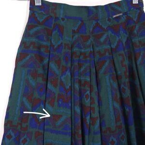 GEIGER AUSTRIA🇦🇹MADE Women’s Pleated A-Line Green Midi Skirt AZTEC PRINT Lined Pockets Vintage 90’s Size 38 US 6
