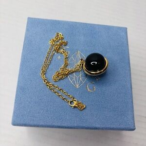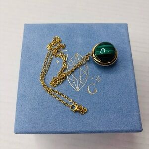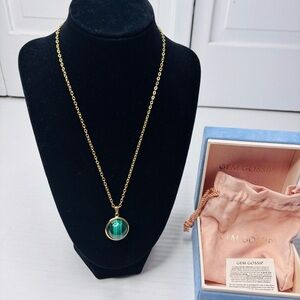 GEM GOSSIP Malachite and Onyx Stone Reversible Pendant 10K Gold Chain Necklace