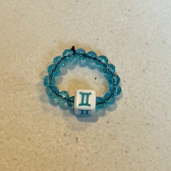*Product Detail: Good Quality Beads. Elastic stretchy band. 1 Gemini Light Blue Crystal Beaded Ring. (Message for custom horoscopes/ Bead color preferences)