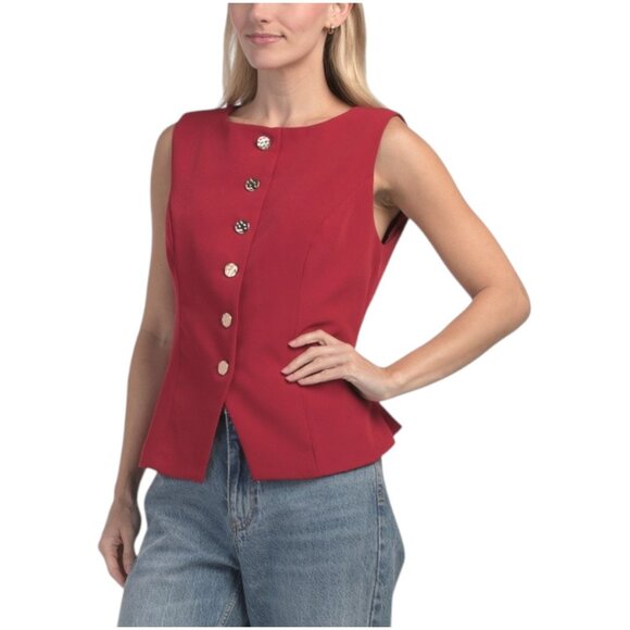 GEMMA+ JANE Scoop Neck Vest With Gold Buttons