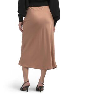 GEMMA+ JANE mocha Satin Soft Flowy Mid Calf Length Skirt