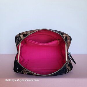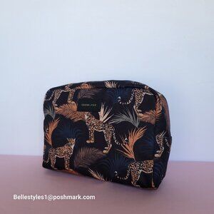 BRAND NEW WITH TAGS. Black multi. A large fabric Travel/cosmetic case with zipper closure for easy organization. Features 1 interior zip pocket and 1 slip pocket for easy organization. Crafted of polyester shell and lining with a leaf and animal print.