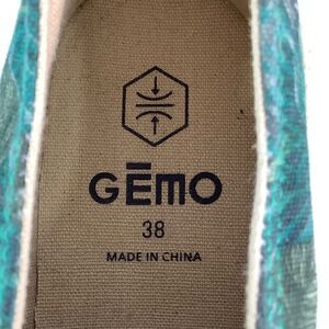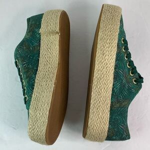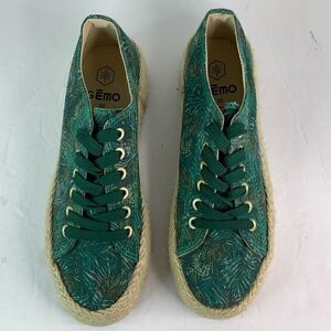GEMO Round Toe Lace Tie Platform Green/Leafs Print Espadrilles Sz 38/US 7.5