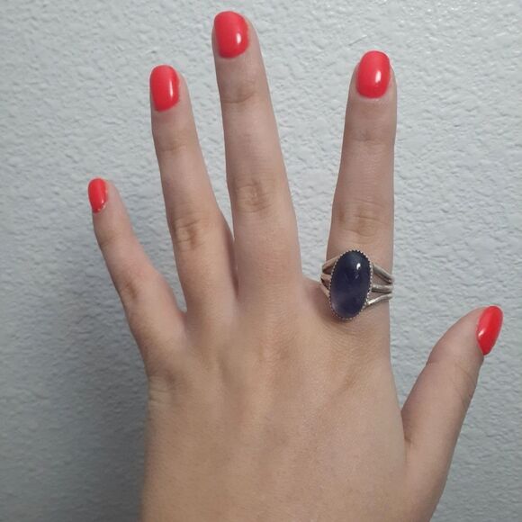 This ring was made at the gemstudio. The ring is a size 8.75. Made with sterling silver.