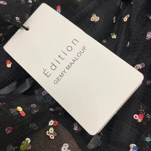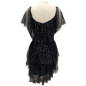 GEMY MAALOUF BLACK SEQUINED TIERED MESH TULLE COCKTAIL DRESS