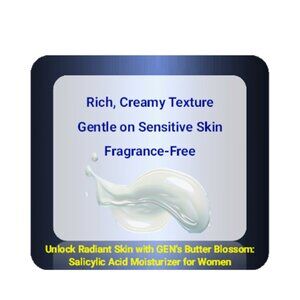 Unlock your skin’s ageless glow with GEN Skin Moisturizer for Dry Skin, your Salicylic Acid Cleanser and Body Lotion. This brightening moisturizer is one of the ultimate anti-aging elixirs to be infused with collagen, niacinamide, and salicylic acid. This is because, it deeply hydrates and plumps skin for a youthful, radiant appearance; moreover, this Niacinamide Body Lotion reduces the appearance of fine lines and wrinkles for a smoother, more supple complexion. Additionally, GEN’s Butter Blossom strengthens skin’s natural barrier to lock in moisture and prevent dryness.”