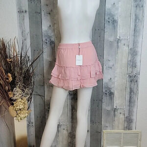 The Audrina Skirt is back for Summer 2021, offering a feminine shape in a sweet Pastel Pink. This tiered, yet fluid silk georgette skirt has a soft touch and accommodating elasticized waist, making it easy to tuck in your favorite t-shirt or blouse
