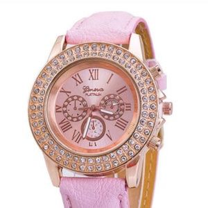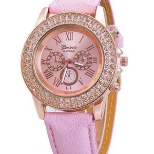 GENEVA PLATINUM jeweled faced watch in pink NEW minor flaw on back band