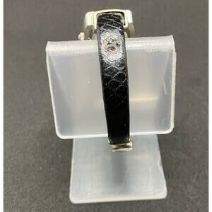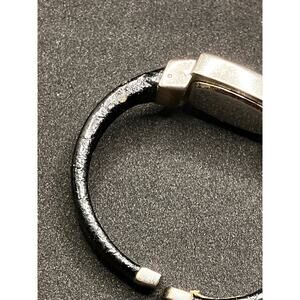 GENEVA *new battery* Silver Tone Cuff Watch Black Womens, Quartz, Leather