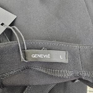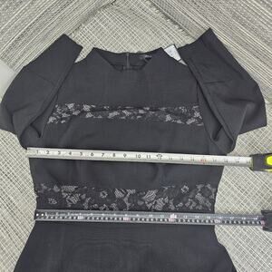 GENEVIE Dress Womens Large Black Floral Lace Sheer Striped A-Line Midi Tea Length with 3/4 Sleeve Party Wedding Guest NEW With Tags