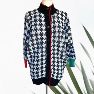 GENOA by BRENDA LIM Women’s Size M Black/White Houndstooth Button Front Sweater.