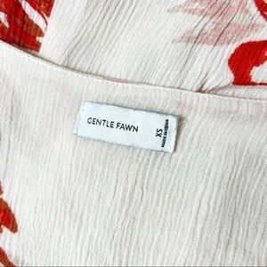 GENTLE FAWN 90s Ivory Floral Short Sleeve Button Front V-Neck Skater Dress XS
