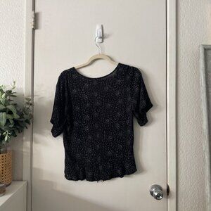 ☀️ GENTLE FAWN Black Scrunch Printed V Neck Top Blouse Size Small Cute Boho
