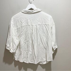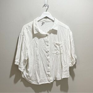 GENTLE FAWN Women’s Ivory BYRON Top In Linen One Pocket Boxy Button Sleeve Sz L