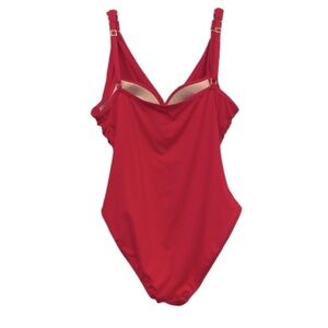 GENTLY USED RED LA BLANCA ONE PIECE BATHING SUIT WITH GOLD EMBELLISHMENT SIZE 14