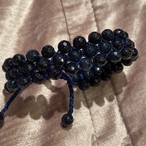 Genuine Chalcedony Briolette Beaded Bracelet in Dark Sapphire Blue