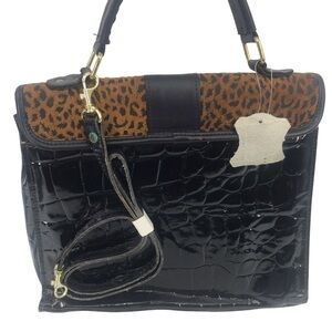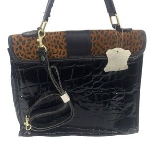 GENUINE LEATHER CHEETAH PRINT CONVERTIBLE CROSSBODY HANDBAG BAG SNAP CLOSURE
