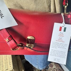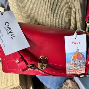 GENUINE LEATHER CROSSBODY SHOULDER HAND BAG FROM CHEVAL FIRENZE ITALY, NEW, RED