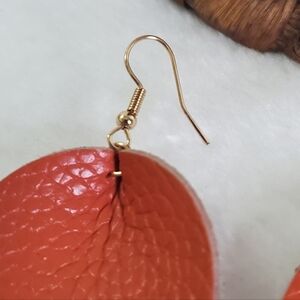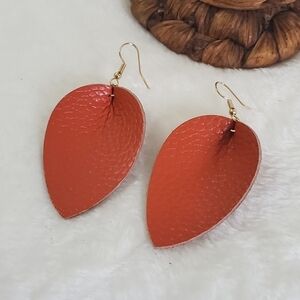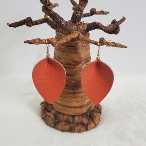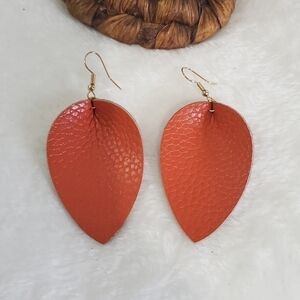 NWOT Genuine Leather Pebbled Orange Leaf Tear Drop Dangle Petal Fish Hook Earrings. Approximately 2" length, 1.25" width, lightweight, durable, comfortable, gold fish hook, nickel & lead free, safe for your delicate skin. Brand new without tags! See more earrings in different colors in my closet!