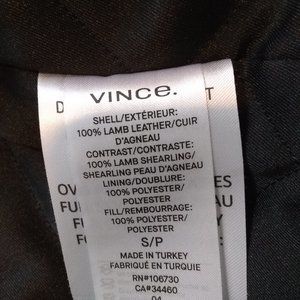 Authentic Vince shearling and leather coat. Never been worn, tags attached. Pristine condition. I absolutely adore this jacket, however, it is slightly too small for me (right now). Non smoking home.