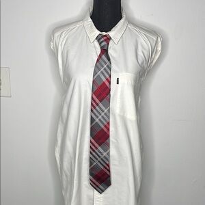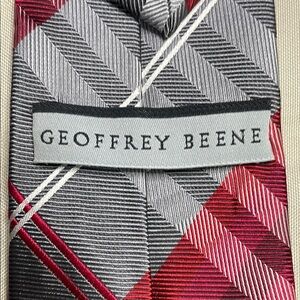 GEOFFREY BEENE Red and Gray Plaid Tie