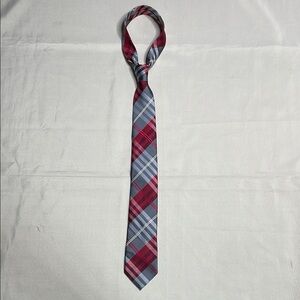 Stylish red and gray plaid tie. Perfect for formal occasions.