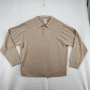 GEOFFREY BEENE Sweater Men's 1/4 Button Collared Long Sleeve Acrylic Brown 2XL