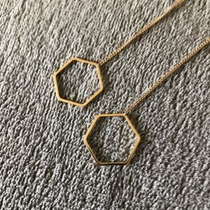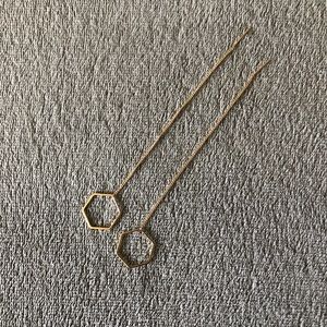Delicate hexagonal long drop earrings • Color: Gold • Material: gold plated zinc alloy