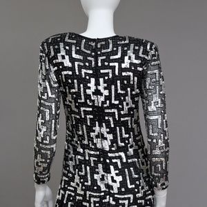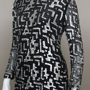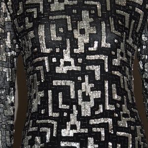 KILLER! Exquisite tunic made of an overall black silk superbly embellished with geometrical clear beads and silver sequin.