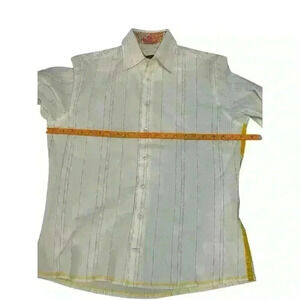 Add a touch of sophistication to your wardrobe with this white button-up shirt by Georg Roth Los Angeles. The long sleeve shirt features a stylish froral print contrast cuff and a collared neckline with a button-down closure. Its size S fits regular size men and is perfect for all seasons. The shirt is made with a striped pattern, button closure, and an angel character design. It is a casual button-down shirt that can be worn for any occasion.