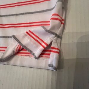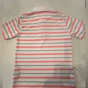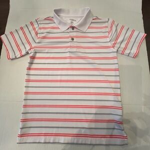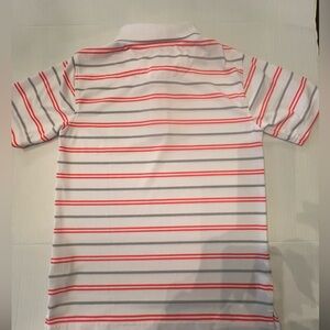 GEORGE BOYS SHORT SLEEVE POLO SHIRT LARGE (10-12) WHITE W/ORANGE & GRAY STRIPES