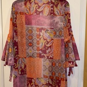 GEORGE BRAND BRIGHT COLORS KIMONO PINKS/ORANGE/PURPLE BELL SLEEVES WITH TIES