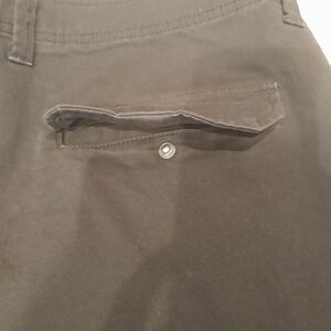 I lightened up the photos but they are dark black. snap back & side pockets.