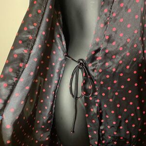 GEORGE Black Red Polka Dot Sleepwear Wrap Silky Robe
