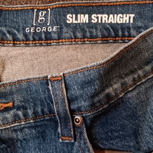 The George Slim Straight Leg Stretch Distressed Jeans in Men's Size 33x30 are a stylish and comfortable choice for any man's wardrobe. Made from denim fabric with a medium wash, these jeans feature a regular fit and straight style. The added stretch feature ensures a comfortable and flexible feel, making them perfect for everyday wear. The distressed detailing adds a trendy touch to the classic blue color, while the George brand adds a reliable element to the overall design. Crafted in Mexico, these jeans offer a blend of quality and style for the modern man.