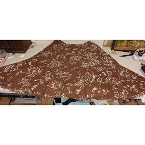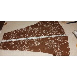 apx 16" waist laid flat Brown/white pattern has lightly scattered sequin detail.