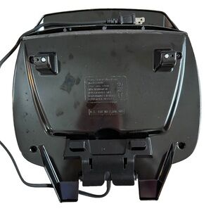 Black electric grill and panini press from George Foreman. This grill has a convenient non stick surface and comes with a drip tray to catch grease and make for quick clean up. The appliance is in excellent preloved condition with no flaws.