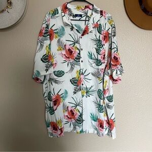 GEORGE MEN’S HAWAIIAN BUTTON-DOWN SHORT-SLEEVE SHIRT - WHITE FLOWERS SOFT