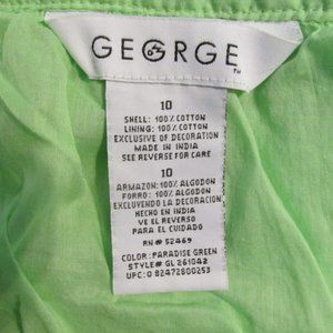 GEORGE WOMEN'S SIZE 10 SKIRT LIME GREEN W/ TURQUOISE EMBROIDERY FEMININE NWT. Fabric: 100% Cotton; Lining: 100% Cotton. Color on tag: "Paradise Green". Very full gathered skirt with 3 green 4 hole button and loop closures at left side seam waistband. Attached tie sash ties at left side waist. Turquoise, seafoam and white geometric embroidery at hem of skirt. Skirt is fully lined. Lining serves as a slip. Coastal Cowgirl. The pictures show the exact item you are purchasing. ** Color may be slightly off due to monitor color setting/flash of camera **.