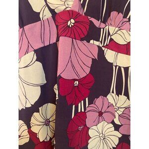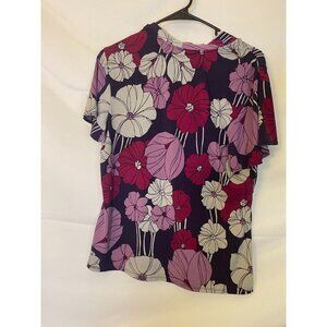 GEORGE WOMENS SIZE LARGE PURPLE FLORAL TOP SHIRT BLOUSE VNECK SHORT