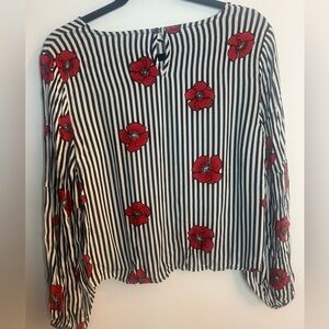 GEORGE size M women’s blouse, black and white stripe with red poppy print