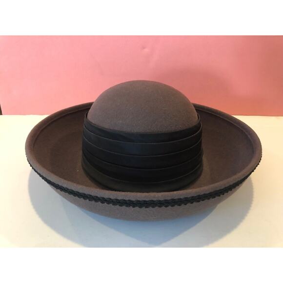 GEORGEORGE W BOLLMAN 100% WOOL BROWN HAT W/BLACK TRIM "EXCELLO" MADE IN USA