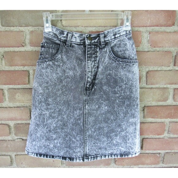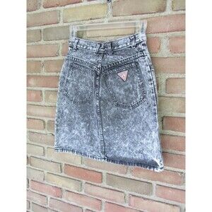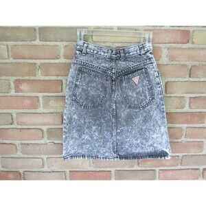 VTG Acid Washed Denim Skirt High Rise 80s Juniors Size 27 GUESS Georges Marciano