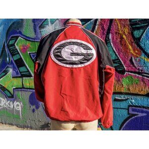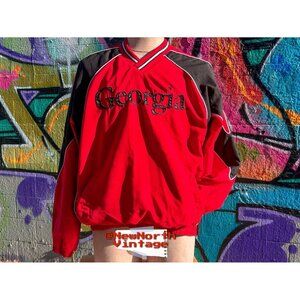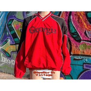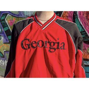 GEORGIA BULLDOGS NCAA Vintage Windbreaker size Large (V-Neck Pullover) | Red and Black with Retro Logo Embroidery