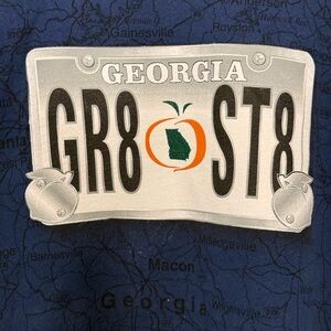 GEORGIA Great State Blue Graphic T-Shirt with Georgia License Plate & Map XXL