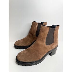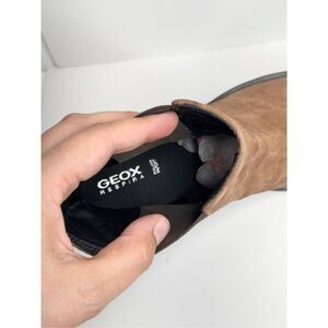 GEOX Leather Boots Size 9.5 Brown Ankle Chelsea Pull On Block Heel Booties NEW