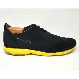 PREOWNED GEOX MENS NEBULA MAN BLACK YELLOW TEXTILE SUEDE LACELESS SNEAKERS