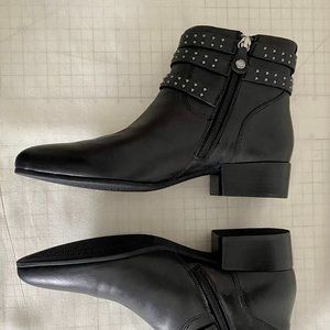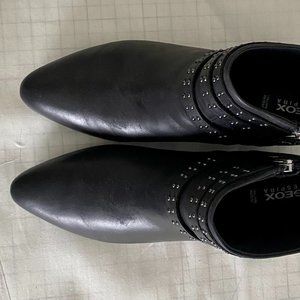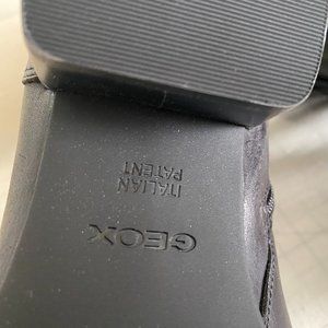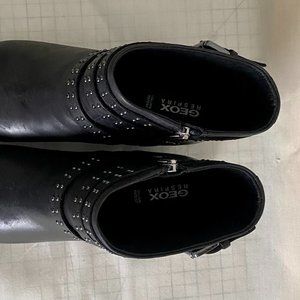 GEOX NWOB Comfy Black Leather Boots Grommets Trim Block Low Heel Zip EU41 US 9.5