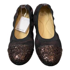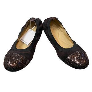 Insanely chic leather ballet flats with a crushed glitter cap toe. Dark burgundy makes it so sassy and it has a touch of gold sheen and then the blingy cap toe,
