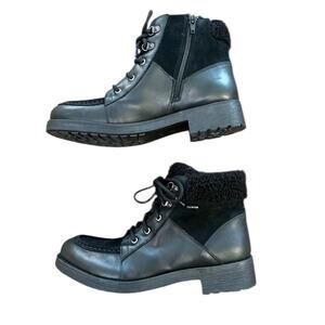GEOX Rawelle ABX Faux Shearling Trimmed Waterproof Black Boots – Sz 9